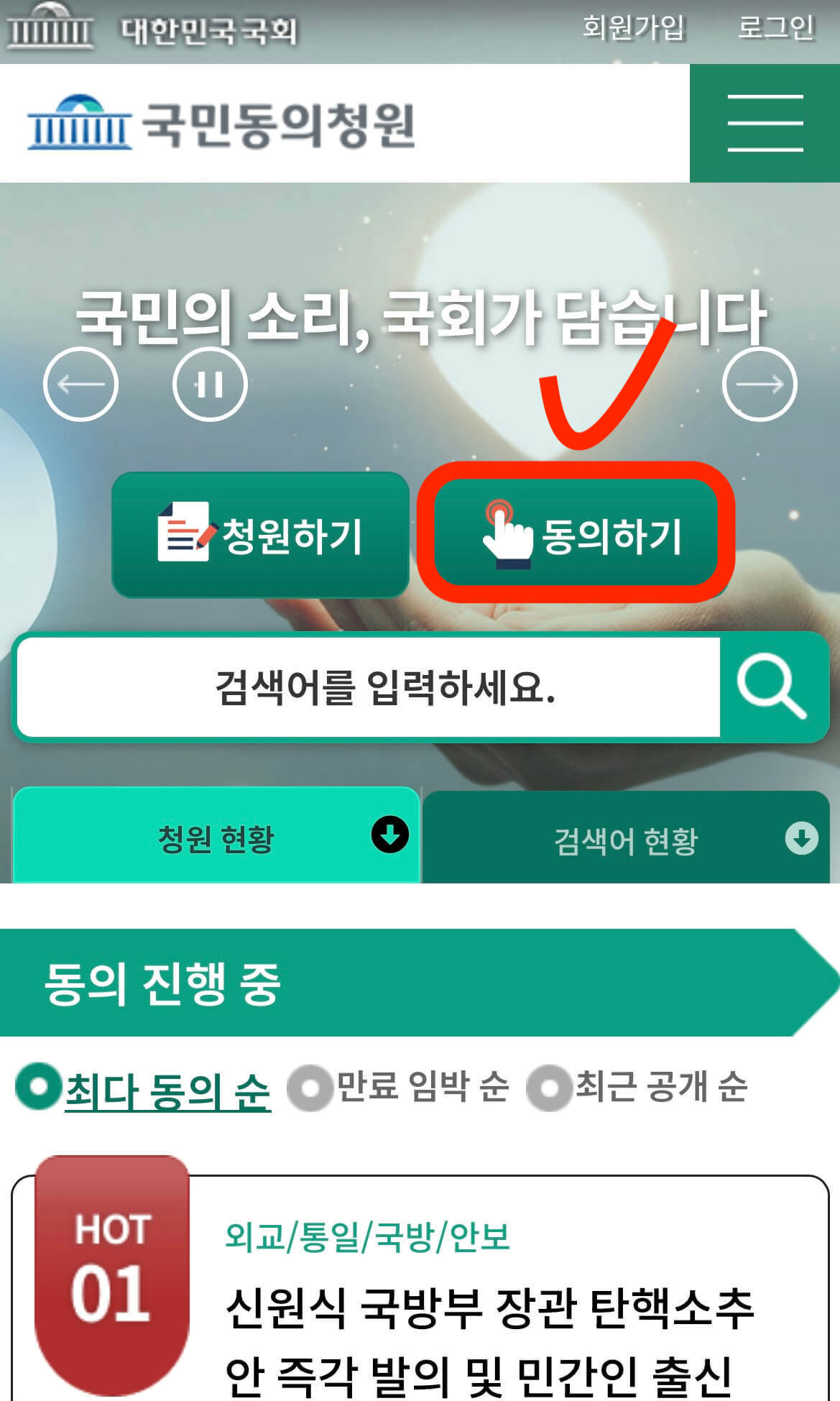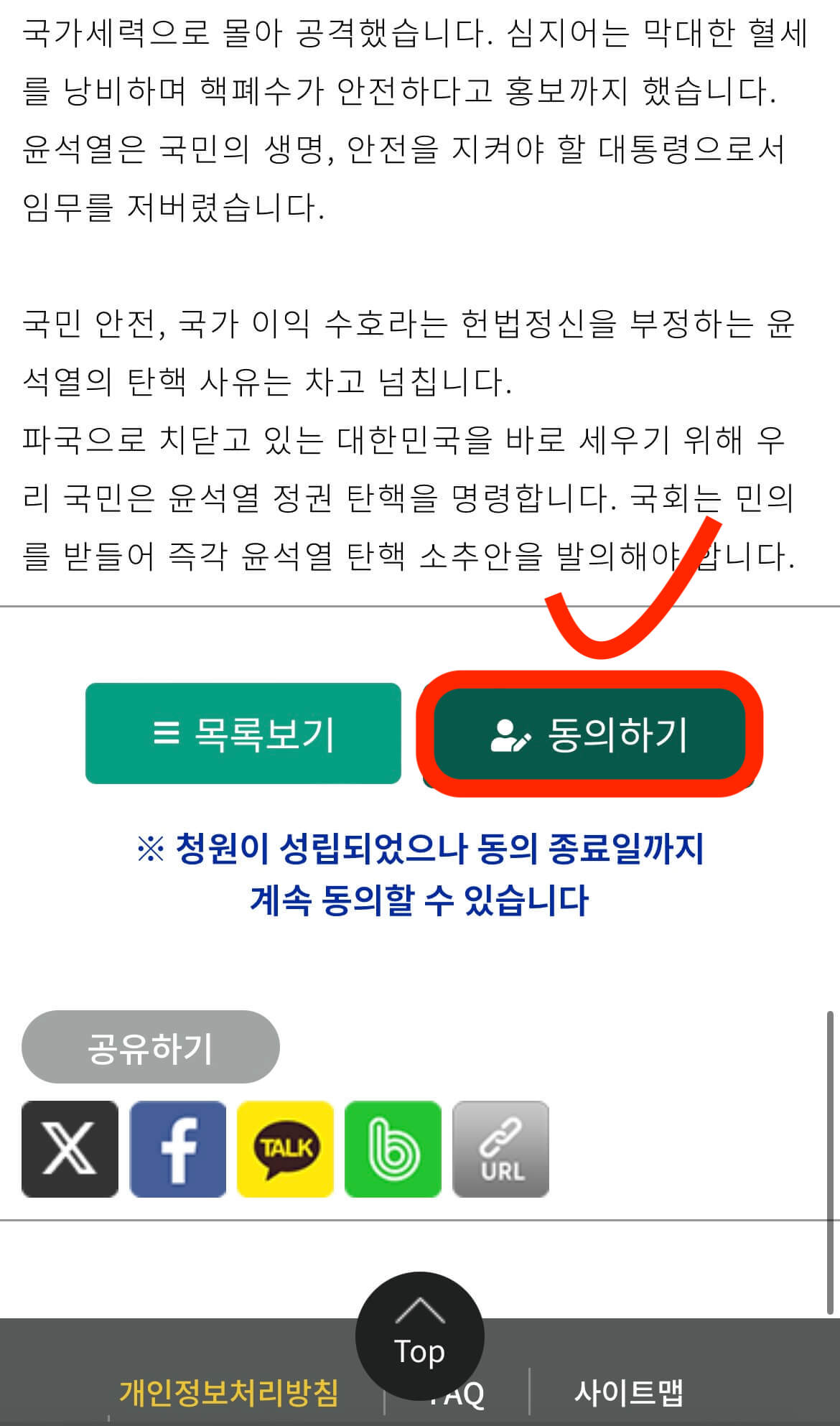탄핵 청원 동의 방법